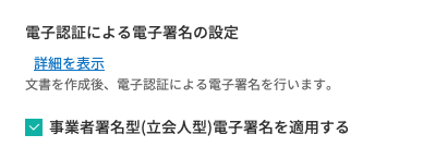 事業者署名型(立会人型)電子署名を適用する: 当該ステップの受信者が文書を作成した後、事業者署名型の電子署名を追加するように設定します。❗文書の送信前に本人確認と重複して設定することはできません。