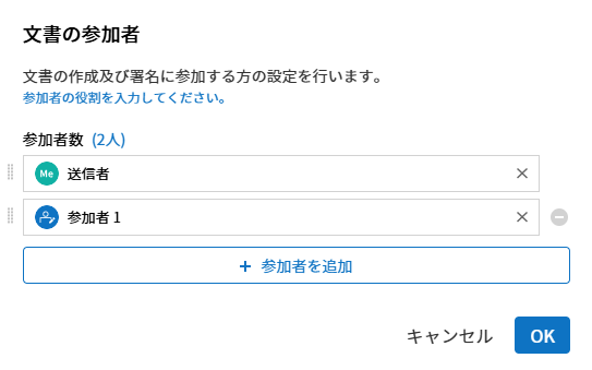 文書の作成に参加する 参加者を追加し、役割を設定します。