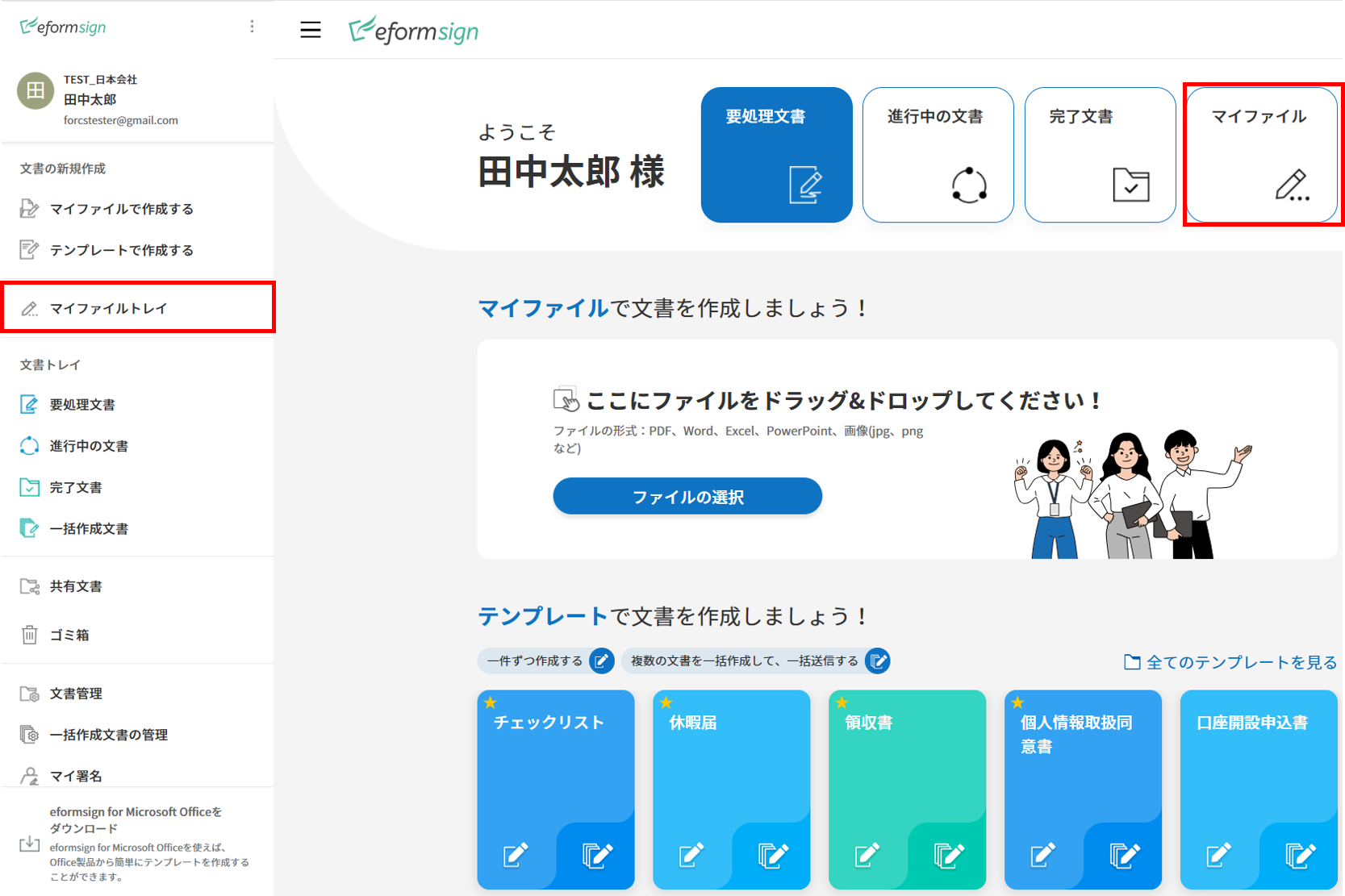 マイファイルで文書を作成する方法は マイファイルで作成する をご参照ください。